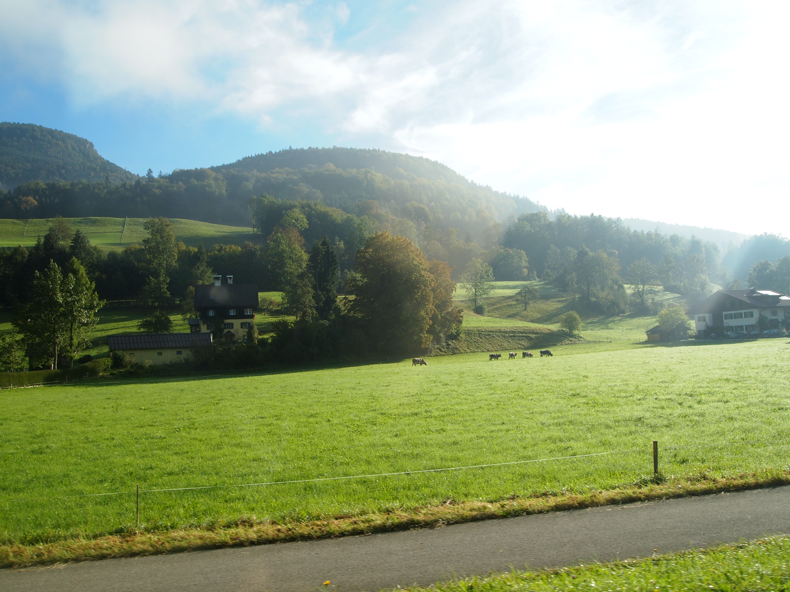 새벽에 눈을 뜨게 됨 문득 할슈타트의 새벽 물안개가 장관이라는 정보가 떠올라 길을 나섰다 해뜨는 중 한쪽 하늘만 밝다 산 너머로 불그스름한 빛이 번진다 마을 몇 안되는 주택 너머로 안개가
